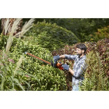 De BLACK+DECKER elektrische heggenschaar BEHTS401 is een zeer krachtige 500 watt heggenschaar met een zwaardlengte van 55 cm. De snijcapaciteit bedraagt 22 mm. Het bijzondere van dit model is dat er aan het eind van het zwaard een 35 mm lange zaag gemonteerd zit, waarmee je ook dikke takken tot 35 mm kunt verwijderen. Hierdoor is hij uitermate geschikt voor het snoeien van grotere, oudere hagen. Hij heeft een comfortabel beugelhandvat, waardoor je in iedere positie volledige controle over de machine hebt.